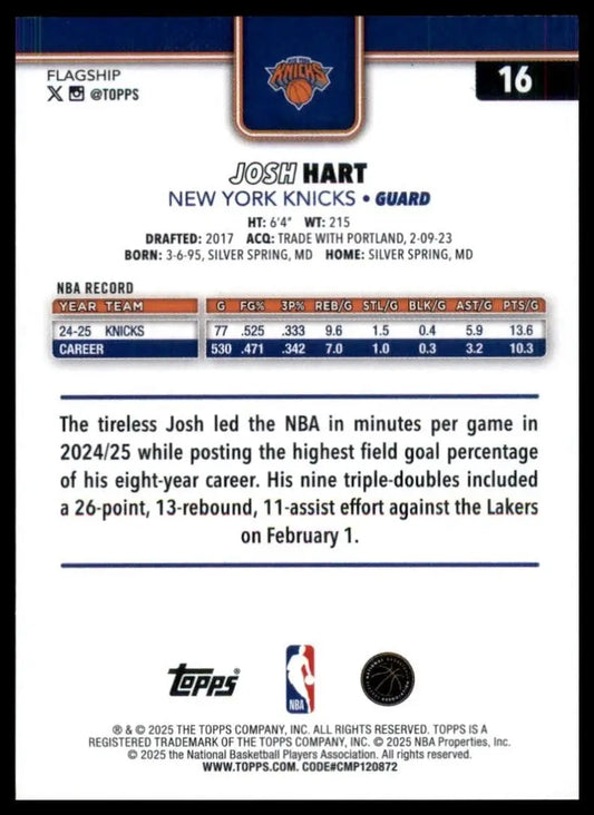 2025-26 Topps Josh Hart #16 New York Knicks Basketball Card NBA Sports