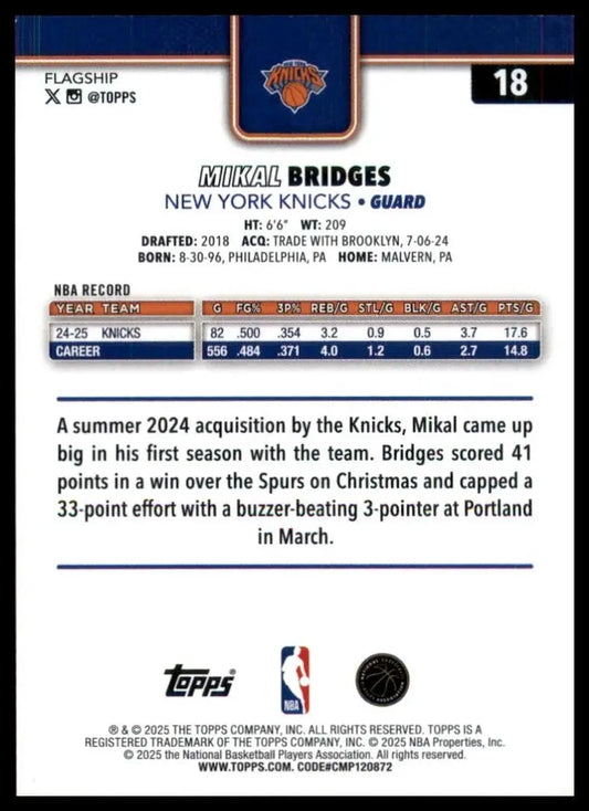 2025-26 Topps Mikal Bridges #18 New York Knicks Basketball Card NBA Sports