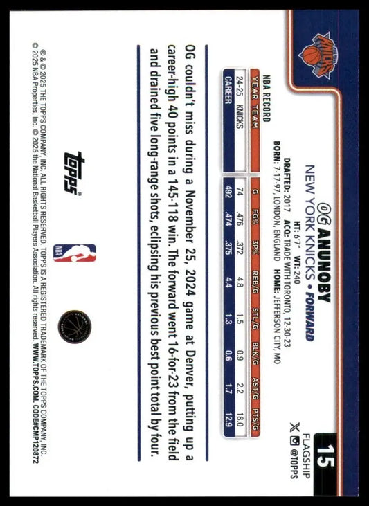 2025-26 Topps OG Anunoby #15 New York Knicks Basketball Card NBA Sports