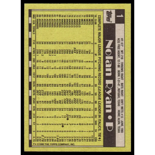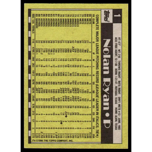 1990 Topps #1 Nolan Ryan EX/NM Texas Rangers Baseball Card