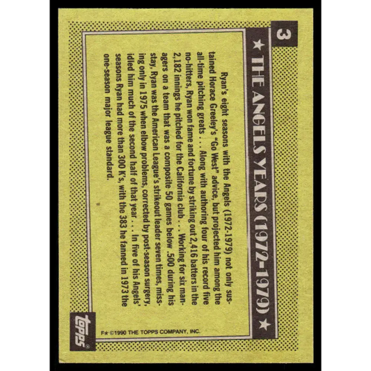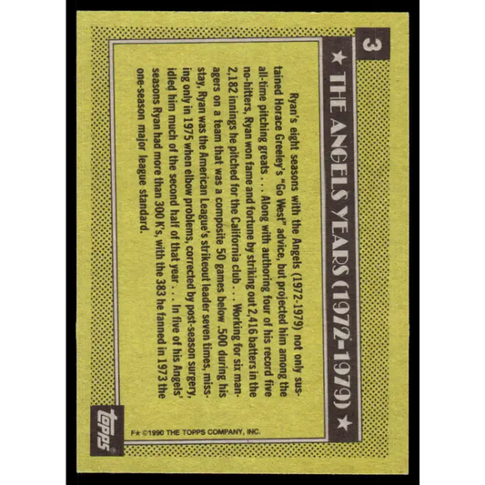 1990 Topps #3 Nolan Ryan EX/NM California Angels Baseball Card