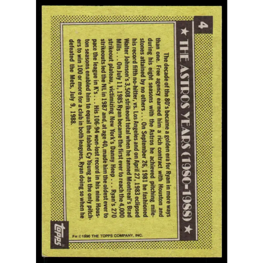 1990 Topps #4 Nolan Ryan EX/NM Houston Astros Baseball Card