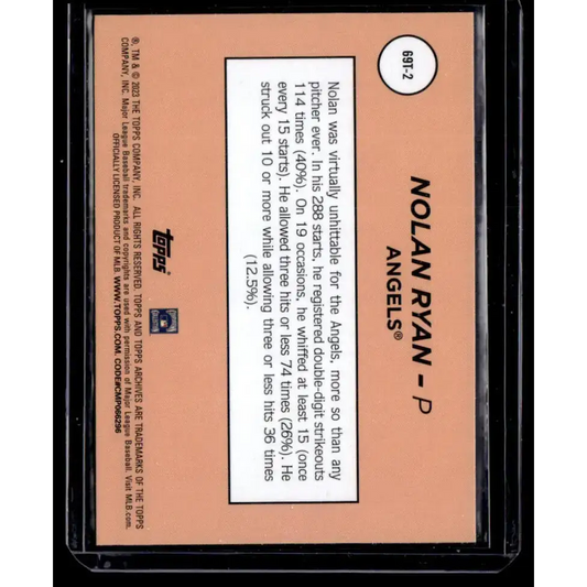 2023 Topps Archives 1969 Single Player Foil #69T-2 Nolan Ryan NM-MT Los Angeles Angels Baseball Card