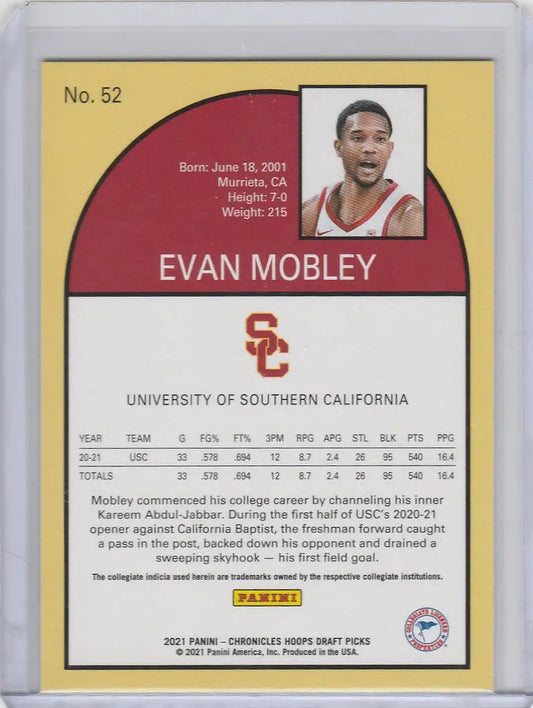 2021-22 Chronicles Draft Picks Hoops #52 Evan Mobley USC