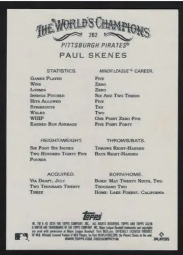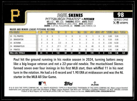 2025 Topps Stars of MLB #SMLB-27 Paul Skenes NM-MT Pirates ID:76892 ID:76892