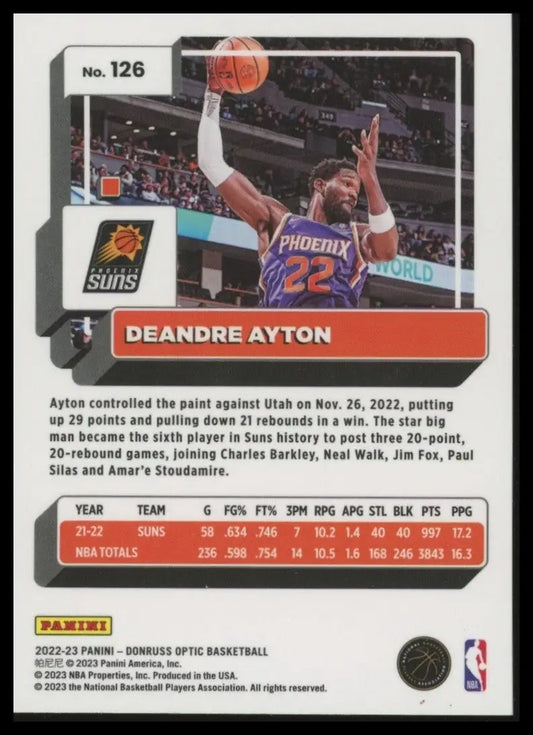 2022-23 Panini Donruss Optic DeAndre Ayton #126 Phoenix Suns Basketball Card NBA