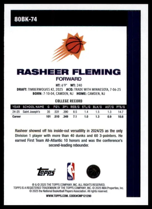 2025-26 Topps 1980-81 Anniversary Rasheer Fleming Rookie #80BK-74 Phoenix Suns