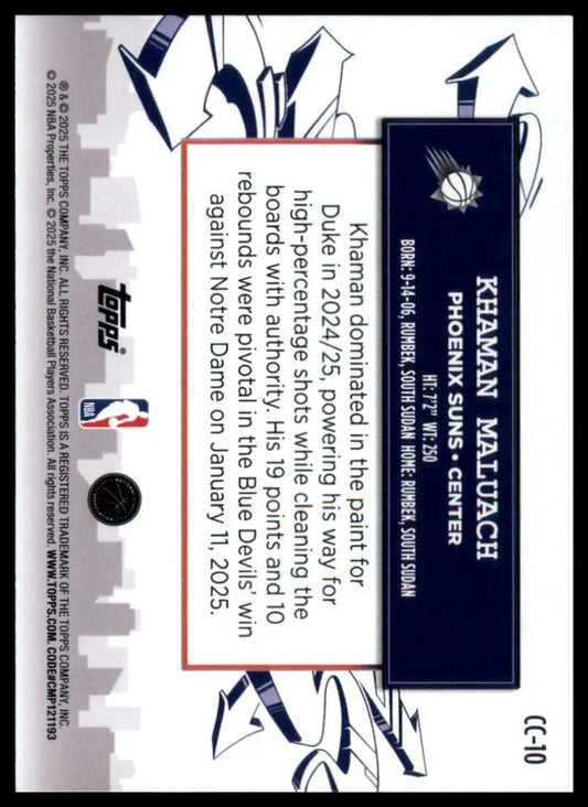 2025-26 Topps Clutch City Prospects Khaman Maluach Rookie #CC-10 Phoenix Suns
