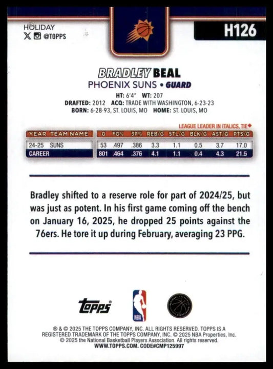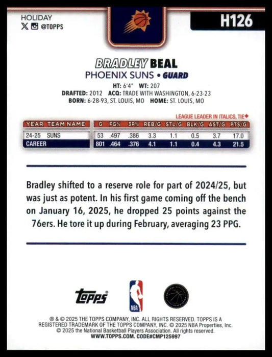 2025-26 Topps Holiday Bradley Beal #H126 Phoenix Suns Basketball Card NBA Sports