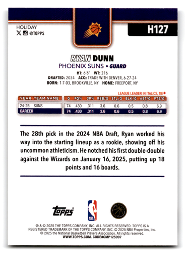 2025-26 Topps Holiday Ryan Dunn #H127 Phoenix Suns
