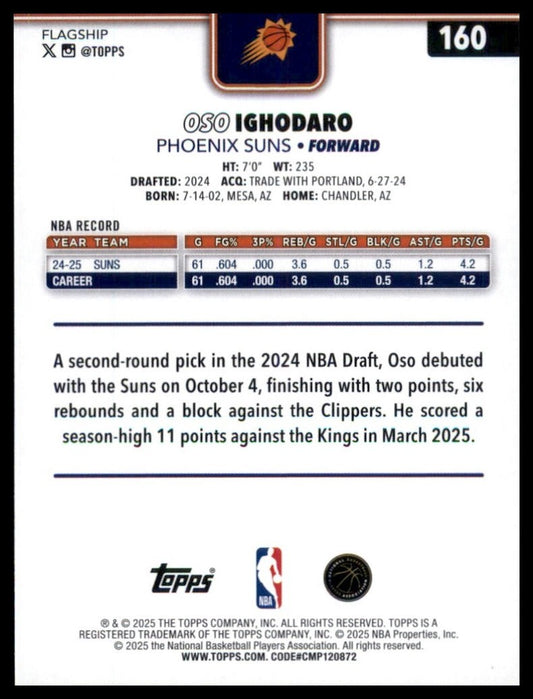 2025-26 Topps Oso Ighodaro #160 Phoenix Suns Basketball Card NBA Sports
