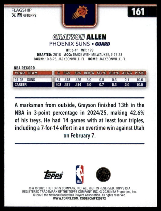 2025-26 Topps Grayson Allen #161 Phoenix Suns Basketball Card NBA Sports