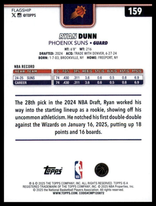 2025-26 Topps Ryan Dunn #159 Phoenix Suns Basketball Card NBA Sports