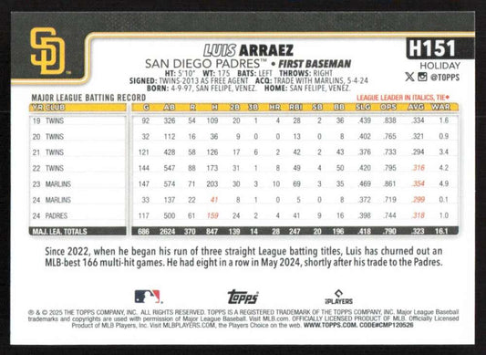 2025 Topps Holiday #H151 Luis Arraez NM-MT Padres ID:79960