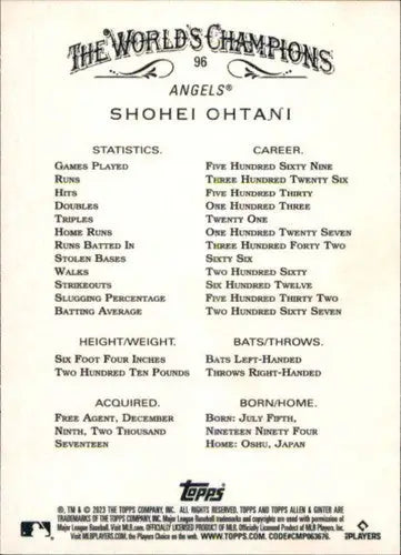 2023 Topps Allen and Ginter #96 Shohei Ohtani NM Near Mint Angels ID:66654