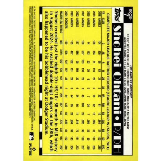 2025 topps Chrome 1990 Topps Baseball #90CB-7 Shohei Ohtani NM-MT Los Angeles Dodgers Baseball Card