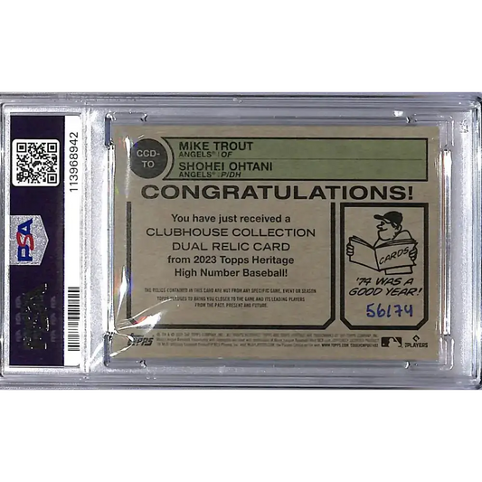 2023 Topps Heritage High Number Clubhouse Collection #CCD-TO Mike Trout / Shohei Ohtani PSA 7 NM MEM Auto Los Angeles Angels