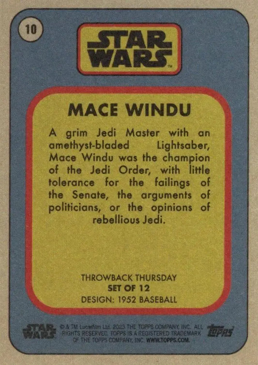 Star Wars Throwback Thursday 2023 Card #10 Mace Windu 1952 Baseball