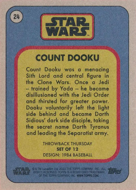 Star Wars Throwback Thursday 2023 Card #24 Count Dooku 1984 Baseball