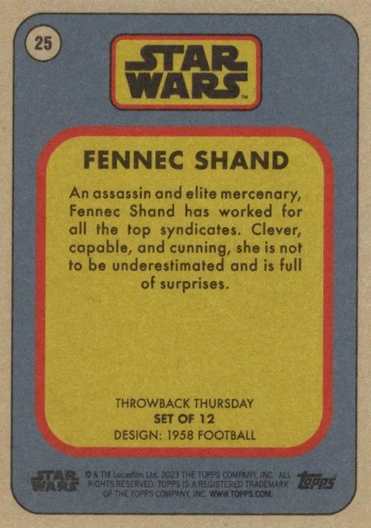 Star Wars Throwback Thursday 2023 Card #25 Fennec Shand 1958 Football