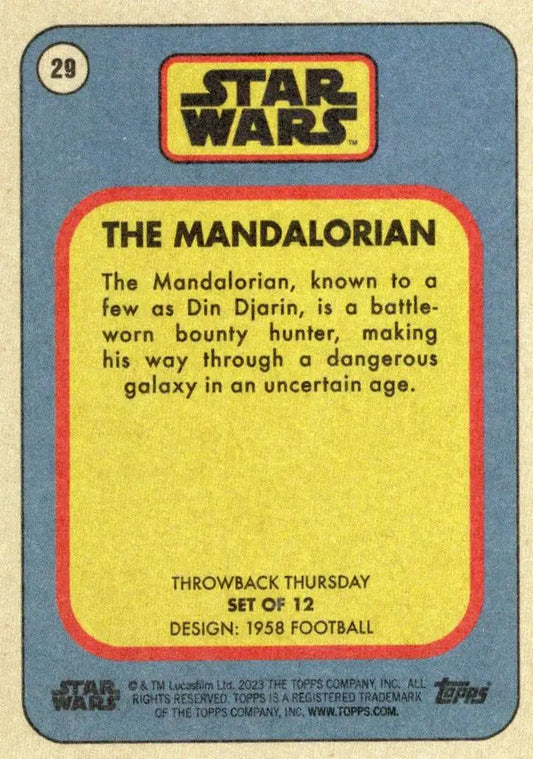 Star Wars Throwback Thursday 2023 Card #29 The Mandalorian 1958 Football
