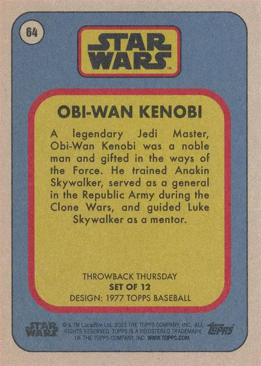 Star Wars Throwback Thursday 2023 Card #64 Obi-Wan Kenobi 1977 Topps Baseball