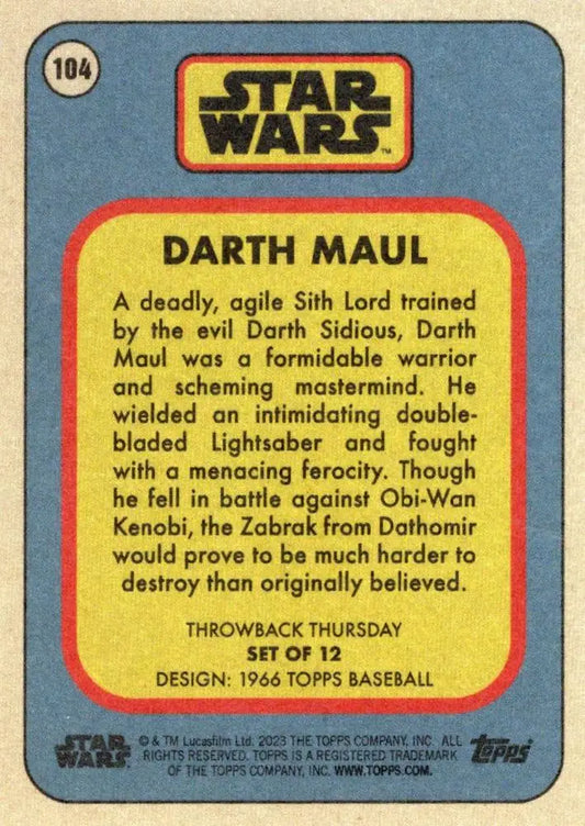 Star Wars Throwback Thursday 2023 Card #104 Darth Maul 1966 Topps Baseball