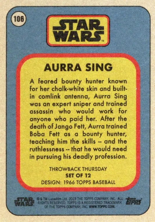 Star Wars Throwback Thursday 2023 Card #106 Aurra Sing 1966 Topps Baseball