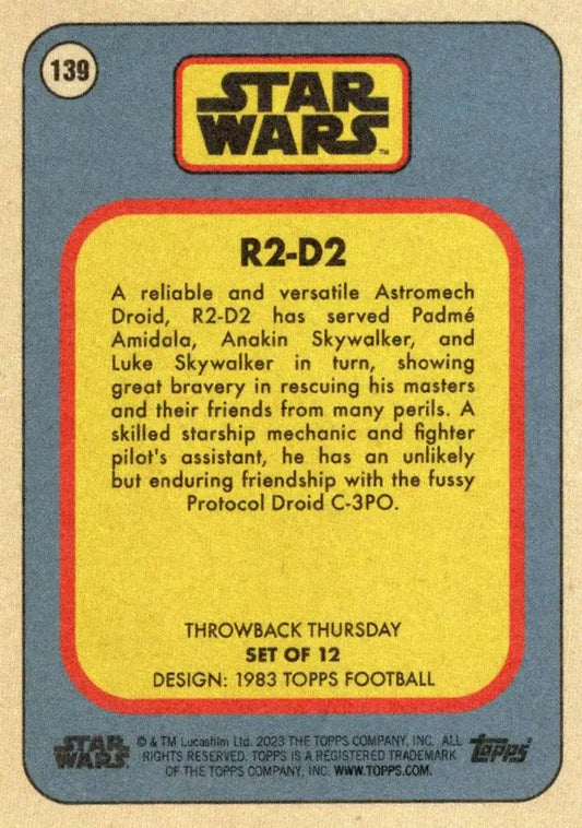 Star Wars Throwback Thursday 2023 Card #139 R2-D2 1983 Topps Football