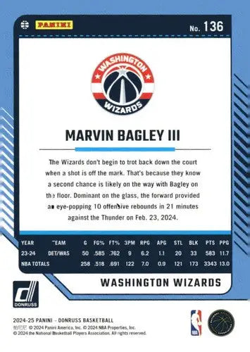 2024-25 Donruss #136 Marvin Bagley III NM-MT Wizards ID:79379