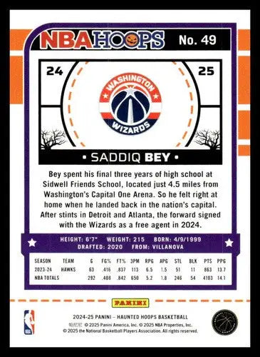 2024-25 Panini Haunted Hoops #49 Saddiq Bey NM-MT Wizards ID:79282