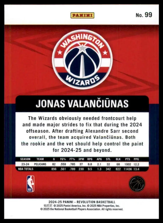 2024-25 Panini Revolution Jonas Valanciunas #99 Washington Wizards Basketball