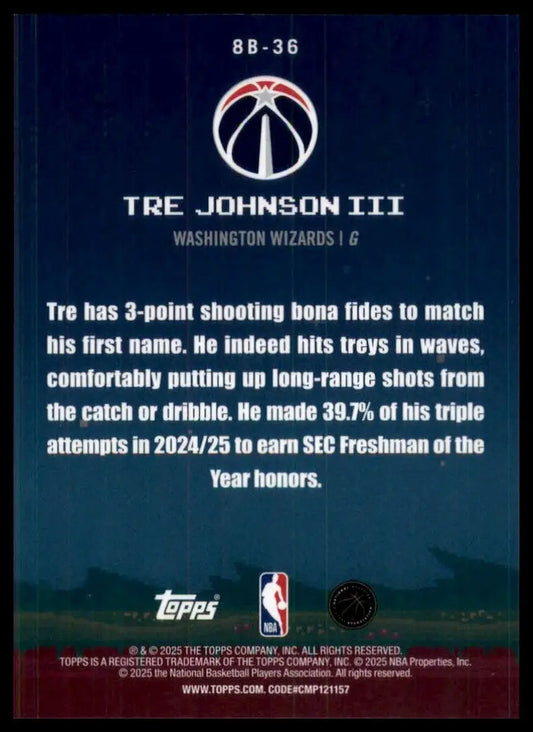 2025-26 Topps 8 Bit Ballers Foil Tre Johnson III Rookie #8B36 Washington Wizards