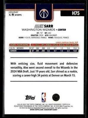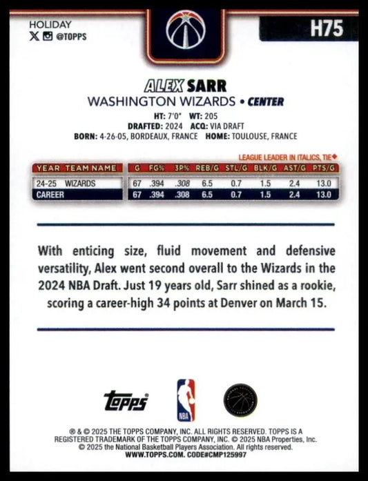 2025-26 Topps Holiday Alex Sarr #H75 Washington Wizards Basketball Card NBA