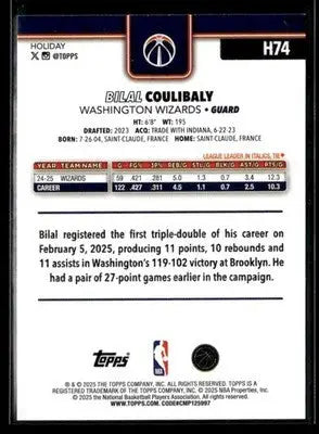 2025-26 Topps Holiday Bilal Coulibaly #H74 Washington Wizards