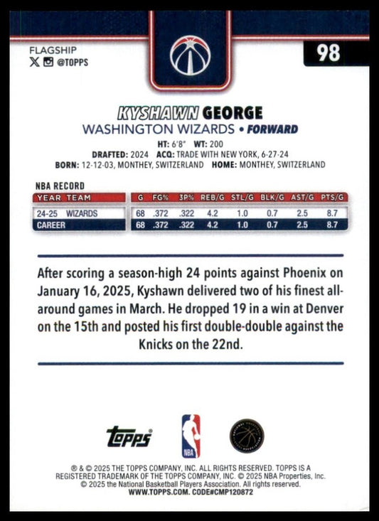 2025-26 Topps Kyshawn George #98 Washington Wizards Basketball Card NBA Sports