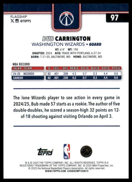 2025-26 Topps Bub Carrington #97 Washington Wizards Basketball Card NBA Sports
