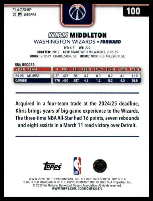 2025-26 Topps Khris Middleton #100 Washington Wizards Basketball Card NBA Sports