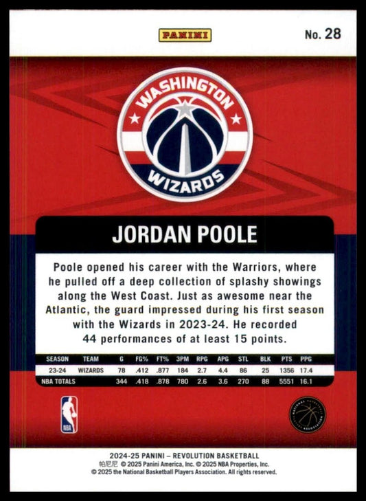 2024-25 Panini Revolution Jordan Poole #28 Washington Wizards Basketball Card