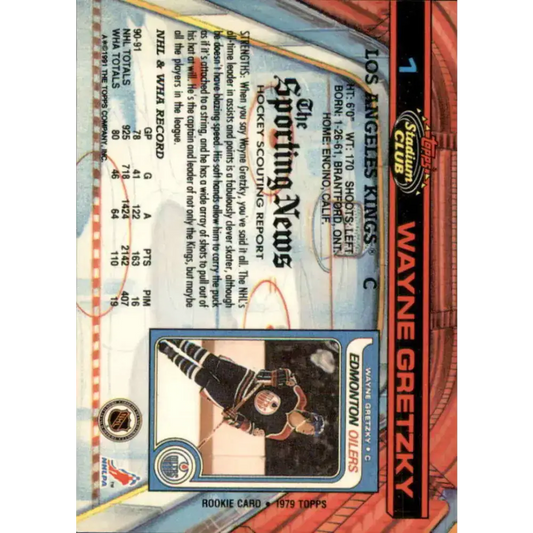 1991-92 Topps Stadium Club #1 Wayne Gretzky NM-MT Los Angeles Kings Hockey Card