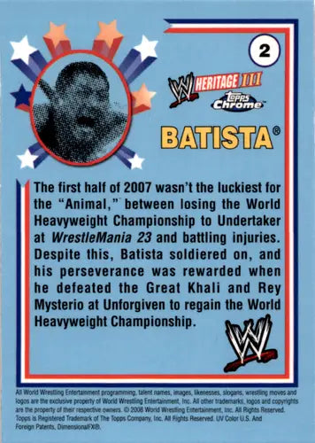 2008 Topps WWE Heritage Chrome III #2 Batista NM-MT ID:45907
