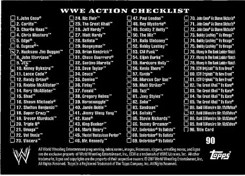 2007 Topps Action WWE #90 Checklist NM Near Mint