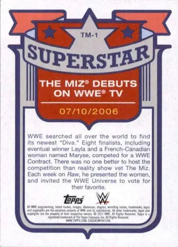 2021 Topps Heritage Superstar Tribute The Miz #TM-1 The Miz Debuts on WWE TV NM-