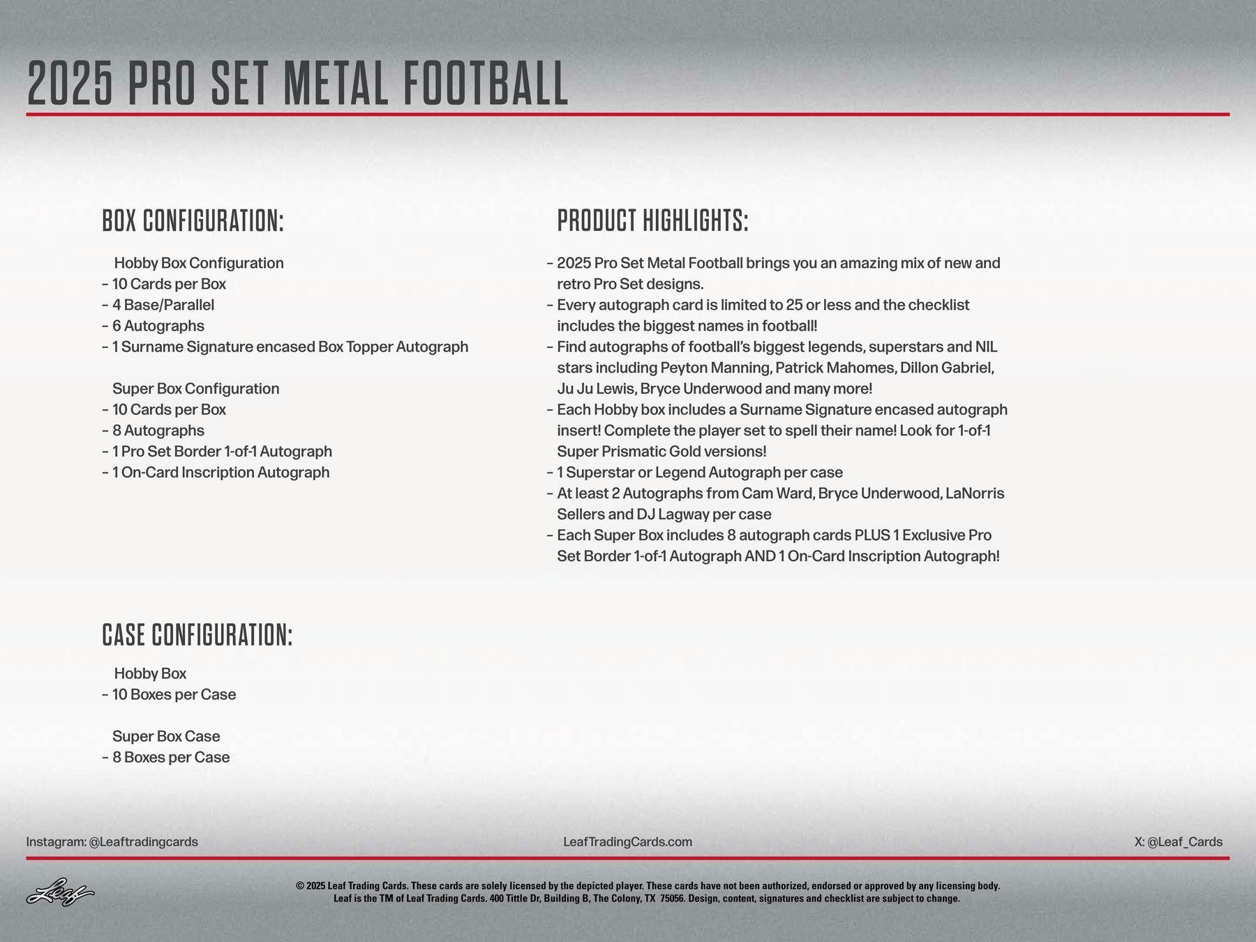 2025 Leaf Pro Set Metal Football Hobby Box