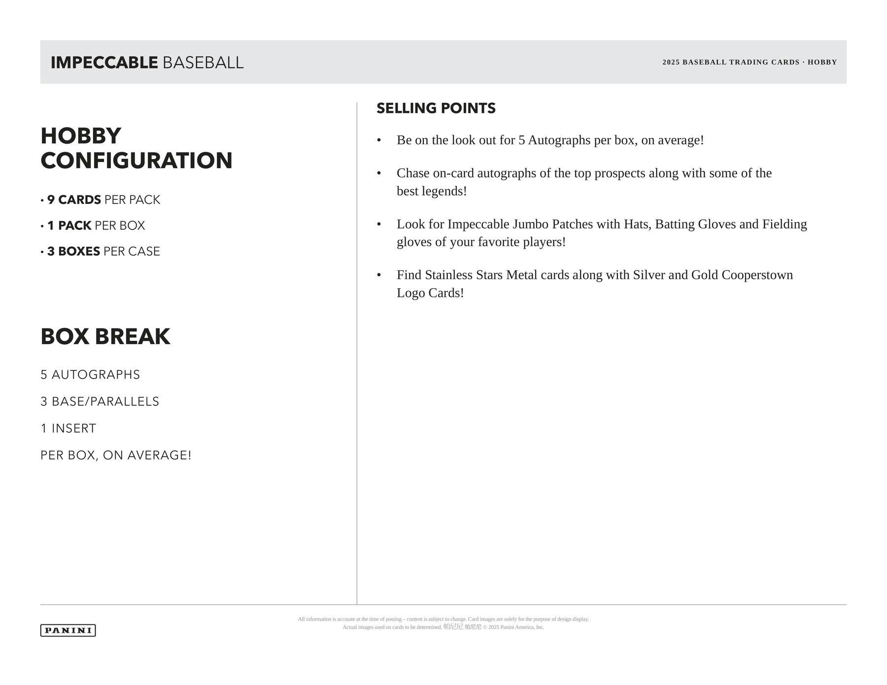2025 Panini Impeccable Baseball Hobby Box | Columbia Sports Cards